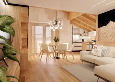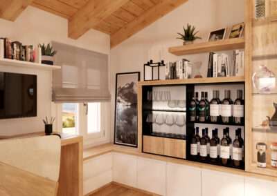 La disposizione degli arredi, le soluzioni contenitive e l’illuminazione sono pensate per rendere gli spazi facili da vivere, accoglienti e funzionali, creando un ambiente che accompagna i momenti di relax e convivialità tipici della vita in montagna.