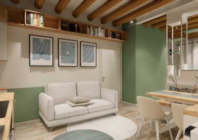 Interior design per un appartamento pensato per accogliere, vivere e adattarsi a diverse esigenze abitative.
