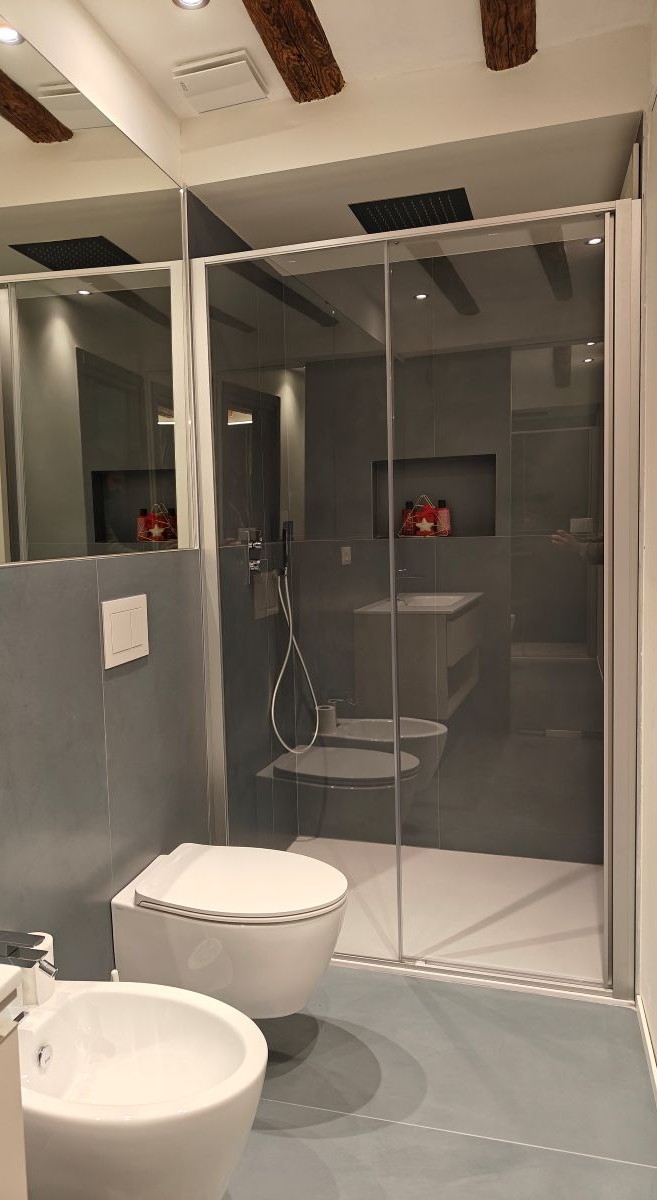 Un elemento distintivo del progetto è il bagno della camera principale, dove la doccia è valorizzata dalla presenza di una finestra che porta luce naturale all’interno dello spazio wellness, migliorando la percezione di comfort e apertura.