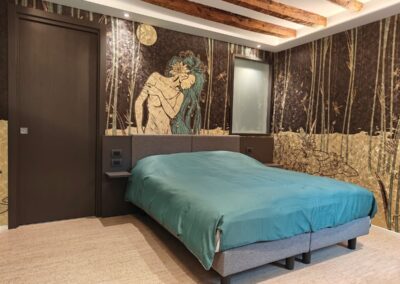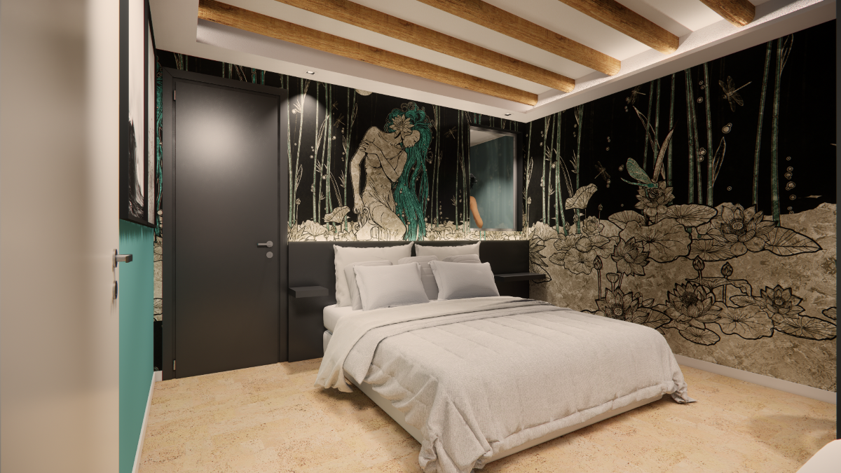 La carta da parati diventa elemento narrativo e distintivo, soprattutto nelle camere da letto, dove contribuisce a creare ambienti intimi e suggestivi, capaci di raccontare il luogo attraverso il design.