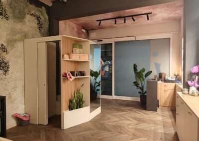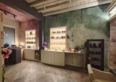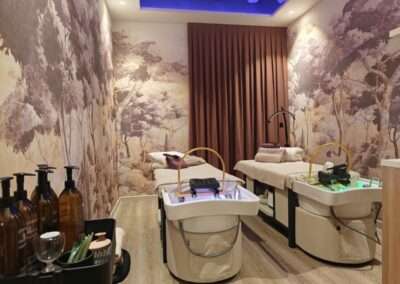 L’obiettivo progettuale è offrire all’ospite un momento in cui rallentare, lasciarsi andare e vivere un’esperienza sensoriale completa, dove ogni elemento – luce, colore, materia e suono – accompagna il trattamento head spa. Il progetto fonde interior design, emozione e funzionalità in un equilibrio studiato in ogni dettaglio.